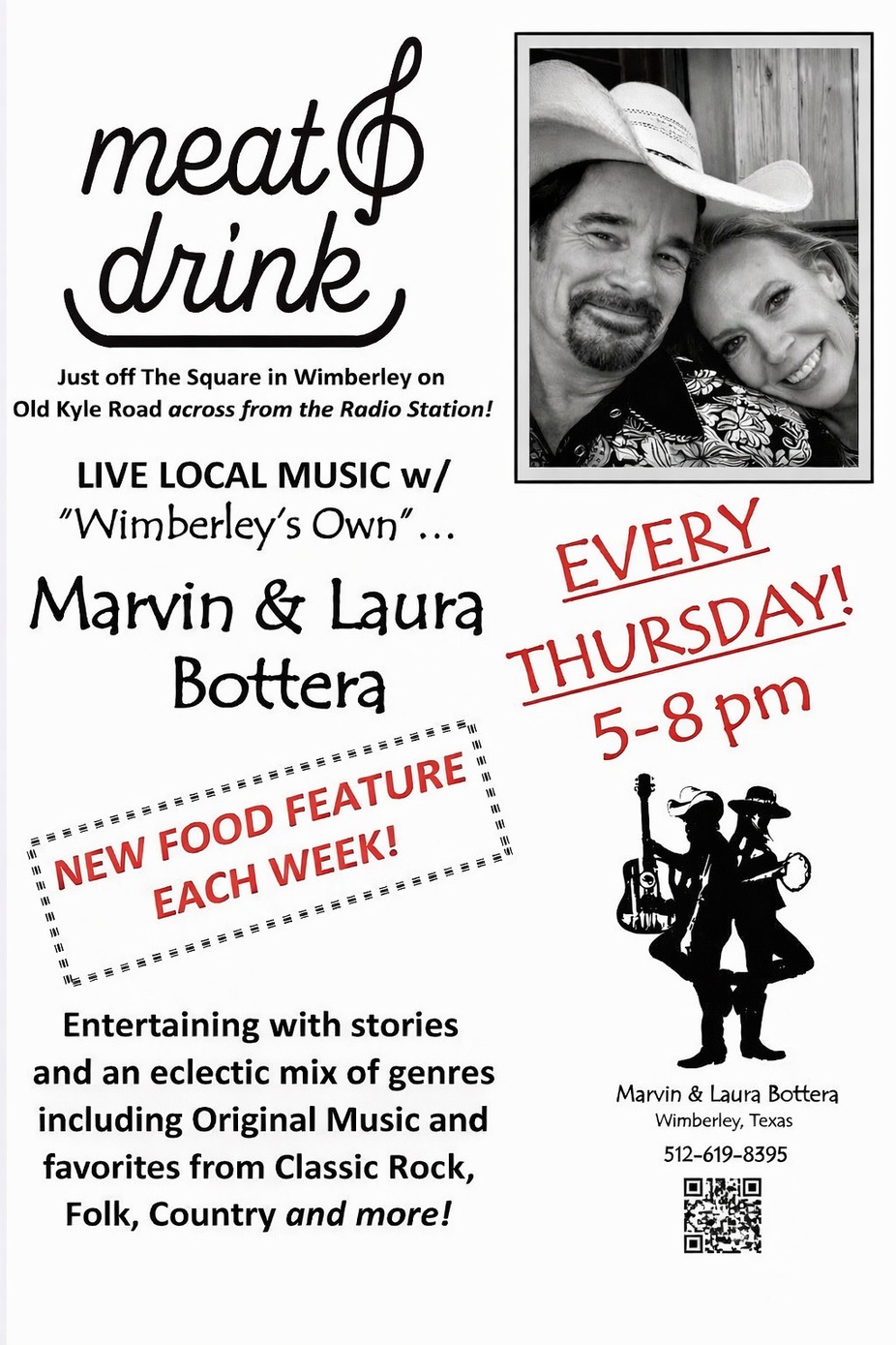 Come out and enjoy the sounds of Marvin and Laura!! Have a couple of tasty beverages and some delicious eats!!!