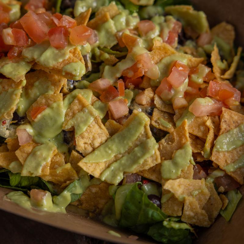 Smoked garlic brown rice, seasoned black beans, field greens, cheddar cheese, diced red onion, jalapeno, avocado crema, shredded lettuce, cilantro, corn tortilla chips, and industry salsa | Add Protein $5.00 (brisket, chicken tinga, avocado)